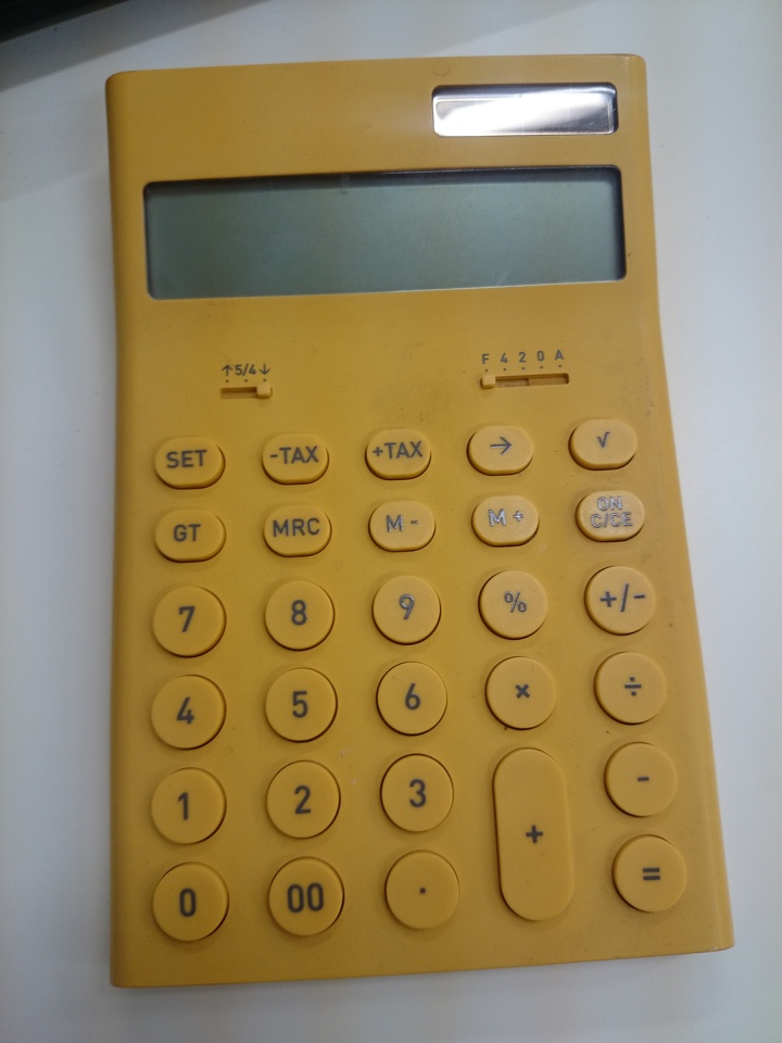 愛用の黄色(=弊社コーポレートカラー)の電卓です。